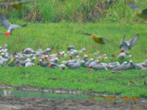 - Puis viennent les perroquets gris, volant en vagues avec leurs danses aériennes impressionnantes